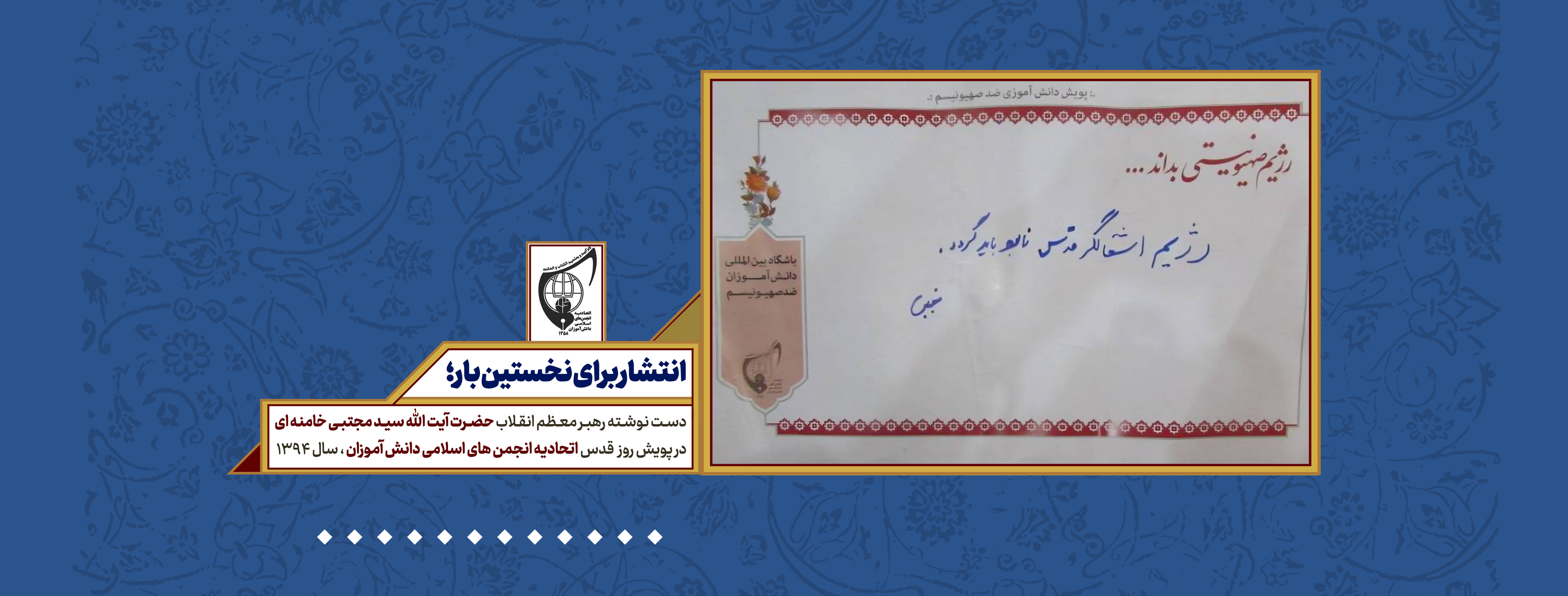 دست نوشته رهبر معظم انقلاب «حضرت آیت الله سید مجتبی خامنهای» در پویش روز قدس اتحادیه انجمن های اسلامی دانش آموزان - سال ۱۳۹۴